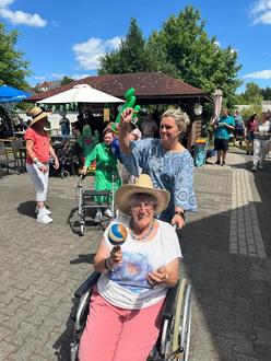 Unser Sommerfest bei herrlichstem Wetter startete mit einem Unterhaltungsprogramm, das in diesem Jahr unter dem Motto „Sommer, Sonne, Kaktus“ stand. Unsere Bewohner zeigten einen Rollatortanz mit dem „berühmten“ Lied von Helge Schneider und hatten einen Auftritt mit Klanghölzern eingeübt, was unsere Gäste mit großen Applaus honorierten.