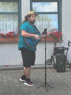 Einen richtigen „Straßenmusiker“ konnten wir außerdem auf unserem Fest begrüßen. Alexander bot uns rockige Lieder zum Mitsingen und Schwelgen in den frühen 80er Jahren an.