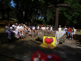 Unser Abschlussgottesdienst in exponierter Lage an der Güdesweiler Kapelle zu dem Thema: „Was wir vom Kindergarten im Herzen tragen“, stand dann eher im Zeichen der leisen Töne. Die Kinder trugen ihre Fürbitten selbst vor, sangen aus Leibeskräften mit - klar, war ja ihr Wortgottesdienst. Danke an unseren Gemeindereferenten Peter Holz für seine immerwährende Unterstützung. Nach dem Segen der Kinder durch die jeweilige Bezugserzieherin wurden die Abschiedsgeschenke überreicht und dann grillten wir alle noch zusammen auf dem Wanderplatz in Güdesweiler.