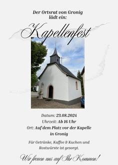 Die Sommerferien gehen schon allmählich in die letzte Phase. Zum Abschluss organisieren wir vom Ortsrat das traditionelle Kapellenfest am 23.08. ab 16 Uhr vor unserer Donatuskapelle. Im letzten Jahr hatte uns leider das Wetter einen Strich durch die Rechnung gemacht; so hoffen wir, dass es diesmal klappt und wir uns bei schönem Sommerwetter an diesem Tage treffen können, um ein paar schöne Stunden gemeinsam zu genießen.