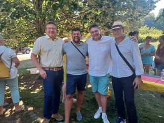 Bonjour, les amis! Herzlich willkommen in Moyenmoutier! Mit diesen Worten begrüßten uns Bürgermeister Jean Hirli und der Beigeordnete Olivier Gérard am 11. August. Aus unserer Gemeinde hatten sich am frühen Morgen 50 Bürgerinnen und Bürger auf den Weg in unsere französische Partnergemeinde gemacht. Einige der Teilnehmer fahren seit vielen Jahren mit, manche seit Beginn der Jumelage, andere waren zum ersten Mal dabei. Einig waren sich alle darin, dass es ein ausgesprochen gelungener Besuch und ein wunderschöner Tag war.