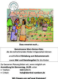 | St. Stephanus, Oberthal | 17.30 | Vorabendmesse anlässlich der Kirmes |