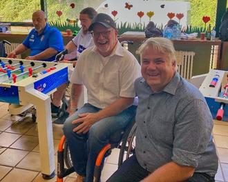 Sehr interessant waren am 25. und 26.08 auch die internationalen Meisterschaften für Sportler mit Handicap. Hier kämpften 18 Einzelspieler und 11 Doppel aus Deutschland, Italien und Belgien um den Meistertitel. Sieger nach den spannenden Wettkämpfen war Corrado Montecaggi (ITA) im Einzel und die Mannschaft Luigi Iannone mit Corrado Montecaggi (ITA). Hartmut Heinke, der Behindertenbeauftragte der Gemeinde Oberthal und Beigeordneter Thomas Conradi gratulieren den verdienten Siegern.