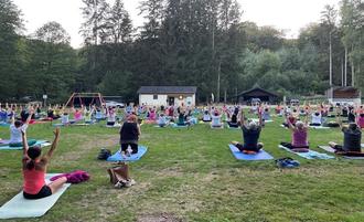 Rund 130 Personen fanden sich am 29. August in den Abendstunden auf der Kapellenwiese in Gronig zur 1. DSLG-Outdoor Yoga Night in der Gemeinde Oberthal ein. Bei bestem Wetter war der Platz rasch gefüllt. Nach einer kurzen Begrüßung durch die DSLG-Landkreisleitung des Landkreises Sankt Wendel (Dr. Marianne Schario) und durch die DSLG-Lenkungsgruppenleiterin der Gemeinde Oberthal (Tanja Schirra) ging es auch schon los. Unter fachkundiger Anleitung wurden die Teilnehmenden durch die unterschiedlichen Asanas geführt. Die besondere Atmosphäre der im Wald gelegenen Kapellenwiese, das Rascheln der Blätter im Wind und das Vogelgezwitscher luden ein, den Geist und den Körper zur Ruhe kommen zu lassen. Die zahlreich aufleuchtenden Fackeln in der Abenddämmerung sorgten ebenfalls für eine ganz besondere Stimmung. Unser Dank geht an unsere Yogalehrerin Frau Conrad, die Organisatoren vor Ort und alle Teilnehmenden für die gelungene 1. DSLG-Outdoor Yoga Night in der Gemeinde Oberthal.