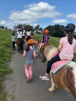 Am zweiten Tag besuchten wir den Hütherhof in St. Wendel. Dort bekamen wir eine Übersicht über die Fressgewohnheiten der Pferde. Zu zweit wurden den Kindern ein Pferd zugeteilt. Dieses durfte ausgiebig gestriegelt und gestreichelt werden. Danach ging es hoch zu Ross auf einen Rundwanderweg. Nach 1,5 Stunden kamen alle glücklich zurück. Wir bastelten mit Hufeisen und viel Glitzer noch einen Aufhänger. Dann ging es wieder ins Schullandheim. Es wurde gegrillt und Stockbrot gemacht. So ging auch dieser Abend schön zu Neige.