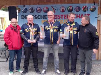 Auch aus sportlicher Sicht war das vergangene Wochenende sehr erfreulich. Denn wir haben jetzt amtierende deutsche Meister in unserem Dorf bzw. in unserer Gemeinde. Andreas, Jörg und Herbert vom Pétanque Club 94 wurden Deutscher Meister im Boule in der Klasse Triplette 55 plus. Eine tolle Leistung und wir sagen herzlichen Glückwunsch zum Erfolg!