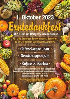 am 01.Oktober veranstaltet der Obst- und Gartenbauverein mit dem Pfarrgemeinderat St. Donatus das traditionelle Erntedankfest. Wie im vergangenen Jahr, werden wir den Seniorennachmittag zusammen mit dem Erntedankfest veranstalten. Alle Seniorinnen und Senioren ab einem Alter von 70 Jahren oder es werden, sind herzlichst eingeladen. Nach der Hl. Messe werden die Festlichkeiten im DGH beginnen. Ab 12:00 Uhr werden je nach Wunsch eine Gemüsesuppe oder eine Gulaschsuppe ausgegeben. Die Kosten für das Mittagessen übernimmt der Ortsrat. Wer dann noch nicht satt ist, kann sich im Anschluss mit Kaffee und Kuchen einen Nachschlag gönnen. Bestellungen können bei jedem Ortsratsmitglied oder sonntags vor der Messe entgegengenommen werden. Eine persönliche Einladung sollte jeder erhalten haben, falls nicht bitte an mich wenden.