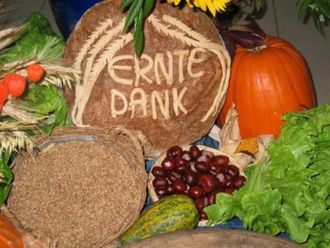 Großer Erntedankaltar gestaltet vom Obst + Gartenbauverein