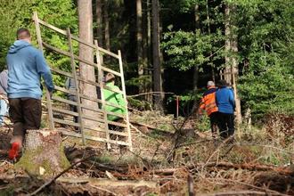 am Samstag, den 17. September, trafen sich über 50 Frauen, Männer und Kinder zum Tag des offenen Revieres an der Kapellenwiese in Gronig. Ziel war es, in einer gemeinsamen Aktion Hordengatter zum Schutz der kommenden Herbstpflanzung im Oberthaler Gemeindewald zu errichten.