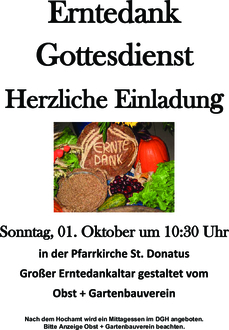 | St. Donatus, Gronig | 10.30 | Hochamt zum Erntedank |