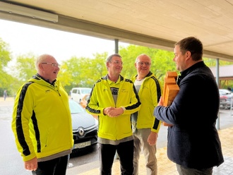 Ein Teilnehmerteam des Turniers bestand aus dem Bürgermeister unserer Partnergemeinde Moyenmoutier Herrn Jean Hirly und seinem Beigeordneten Herrn Oliver Gerard. Sie trotzten wie viele weitere Teilnehmerinnen und Teilnehmer dem Regenwetter am vergangenen Sonntag ganz nach dem Motto „Es gibt kein schlechtes Wetter, nur schlechte Kleidung“.