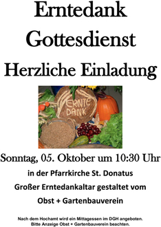 | St. Donatus, Gronig | 10:30 | Hochamt zum Erntedank |