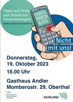 wie schon letzte Woche erwähnt findet am Donnerstag, den 19. Oktober ab 18:00 Uhr im Saal des Gasthauses Andler eine Veranstaltung zum Thema „Enkeltrick & Co.“ statt. Hier wird zusammen mit dem Ministerium für Inneres, Bauen und Sport mit Tipps und Tricks zum Schutz vor Telefonbetrügern referiert. Zurzeit ist diese Methode stark verbreitet und leider auch des Öfteren erfolgreich. Um diesen Methoden Einhalt gebieten zu können und vorbereitet zu sein, damit nicht noch weitere darauf hereinfallen, lade ich alle Bürgerinnen und Bürger in Gronig und natürlich aus der gesamten Gemeinde recht herzlich ein vorbeizukommen und sich von erfahrenen Polizeibeamten zu informieren. Sie berichten aus der Praxis und weisen Möglichkeiten auf, wie man sich besser schützen kann.