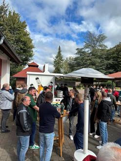 Und an diesem besonderen Tag wurden auch zwei Veranstaltungen bei uns in der Gemeinde, die auch Menschen zusammenbringen, gefeiert. Zum einen fand in Steinberg-Deckenhardt beim dortigen Obst- und Gartenbauverein das „Viezfeschd“ statt. Auch im Saarland ist Viez ein traditioneller Bestandteil und Teil der regionalen Kultur. Der charakteristische Apfelwein hat eine lange Geschichte, die tief in den Alltag und die Feste der Menschen verwoben ist. Unsere Vorfahren wussten die reiche Apfelernte zu schätzen und entwickelten das Wissen und die Kunst, aus den heimischen Äpfeln diesen besonderen Wein zu gewinnen. Zugegeben, nicht unbedingt bei uns im nordöstlichen Saarlandes, ist es doch eher im Merziger Raum stärker verwurzelt. Unsere Freunde des guten Geschmacks aus Steinberg hinderte es auf jeden Fall nicht, dieses Handwerk für die gesamte Bevölkerung auszuüben und das Ergebnis mit allen zu teilen. Das Ergebnis mundet sehr gut und für alle die dem Viez nicht zugetan sind, wurde natürlich auch gesorgt.