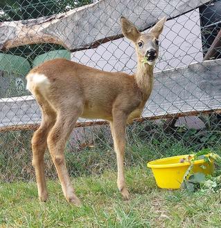 Ende Mai wurde in der Gemeinde bei Mäharbeiten mit der Sense ein weibliches Rehkitz erheblich verletzt. Wir haben es mit tierärztlicher Unterstützung wieder aufgepäppelt und während der letzten Monate betreut, so dass es sich sehr gut zu einem jungen Reh entwickelt hat. Derzeit befindet sie sich in der Auswilderungsphase. Eigentlich war der Plan ein anderer und sie hätte erst im Frühjahr wieder in die Freiheit entlassen werden sollen. Aber sie selbst hat nun die Zeit gewählt. Sie hat weiterhin die Möglichkeit täglich zu uns zu kommen und Futter aufzunehmen oder eventuell auch noch ein Fläschchen zu trinken. Natürlich ist sie noch sehr zutraulich, daher nicht wundern, wenn ein Reh etwas nahekommt. In dem Fall bitte nicht streicheln, sondern lieber zurückweisen. Sie soll ihren Platz in der Natur finden.