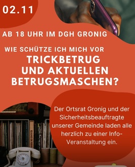 wie bereits angekündigt findet am kommenden Sonntag um 18 Uhr die Info-Veranstaltung mit Herrn Dietmar Böhmer statt, der uns über aktuelle Gefahren und Betrugsmaschen unterrichten möchte und Maßnahmen zur Prävention aufzeigen wird. Es wäre schön und wichtig, wenn viele diese äußerst informative Veranstaltung besuchen würden.