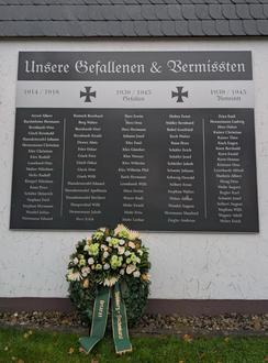 Dieses Jahr fand der Volkstrauertag aufgrund der Witterungsverhältnisse an der Gedenktafel der Gefallenen der zwei Weltkriege am Friedhof statt.