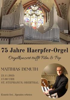 | St. Stephanus, Oberthal | 17:00 | Orgelkonzert trifft Film & Pop) |