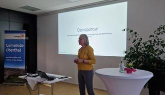 Im Rahmen der Gesundheitsprävention der Gemeinde Oberthal gab Frau Dr. med. Fischer Tipps und Tricks zum Thema Osteoporose. Es ging um Prävention durch Ernährungsempfehlung, Nahrungsergänzungsmittel (Schlagwort Vitamin D) und Bewegung. Das Publikum lauschte gespannt dem einstündigen Vortrag. Danach beantwortete die Rednerin Fragen vom Publikum zum Thema.