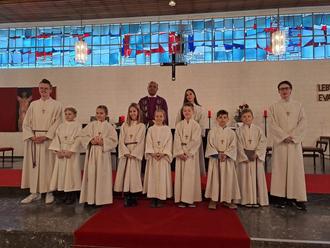 Weihnachten steht vor der Tür und auch das Jahresende rückt immer näher. Damit alle auch in Weihnachtsstimmung kommen, gab es wieder viele wunderschöne Veranstaltungen und Feiern die den passenden Rahmen boten. Am 3.Advent wurden die neuen Messdienerinnen und Messdiener in der hl. Messe durch Pater Ignasius vorgestellt. Durch die 10 neuen, wuchs die Zahl der Messdienerinnen und Messdiener auf 19 an. Hier gilt ein besonderer Dank an Klaus-Peter Schuch und dem Pfarrgemeinderat für ihr Engagement und liebevolle Betreuung. In diesem Jahr unterstützten zum ersten Mal Gilmar Schmidt und Lukas Haas die Vorbereitung auf die Aufgaben der neuen Messdienerinnen und Messdiener. Auch den beiden möchte ich sehr danken.