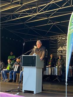„Niemals wieder ist JETZT!“ Dieser Satz ist mehrfach in den Reden genannt worden und ich danke von ganzem Herzen den jeweiligen Sprechern der teilnehmenden Organisatoren, und insbesondere auch unserem Landrat Udo Recktenwald sowie Herrn Minister Dr. Magnus Jung, für ihre deutlichen und klaren Worte, mit denen sie sich an die Teilnehmer dieser Veranstaltung gewandt haben.