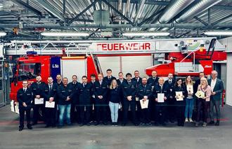 Nachträglich mit der Fluthelfermedaille ausgezeichnet wurden Werner Steinhöfer und Celine Koch. Ehrungen für 15 Dienstjahre mit dem bronzenen Feuerwehrehrenzeichen ergingen an Franziska Wagner, Marco Wagner (nachträglich) und Fabian Wingerter. Ehrungen für 25 Dienstjahre mit dem silbernen Feuerwehrehrenzeichen gingen an Denise Gensheimer, Florian Kaas, Silke Richter, Marco Wagner, Jens Wingerter, Florian Kaiser, Christian Kern, Nicolas Glatz und Max Weilbach. Befördert wurden: Marc Klein und Werner Steinhöfer zum Oberfeuerwehrmann, Marco Wagner, Fabian Wingerter und Tom Domnick zum Löschmeister, Michelle Lyons zum Hauptfeuerwehrmann, Christoph Lahres und Lukas Kern zum Brandmeister sowie Nicolas Glatz zum Oberbrandmeister. Mario Meinhart wurde zum Hauptbrandmeister befördert und gleichzeitig zum Verbandsführer bestellt. Schlussendlich wurde nach über 35 Jahren aktiver Feuerwehrtätigkeit unsere Kameradin Marion Zimmer aus dem aktiven Feuerwehrdienst der Feuerwehr Offenbach verabschiedet.