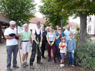 Welch eine Überraschung! Obwohl der Termin sehr kurzfristig bekannt gemacht wurde, fand sich am letzten Samstag ein 14-köpfiges Team zur Blumenbeet-Pflege am Turnplatz zu kümmern. Zig Meter von Ackerwinden wurden herausgezogen, anderer Wildwuchs gejätet und die Pflanzen teilweise zurückgeschnitten. Nun haben die Rosen und der Lavendel wieder genug Freiraum zum Wachsen. Zusätzlich wurden die Absperrpoller sortiert und der Platz entlang an der Spanierstraße sauber gekehrt. Sogar eine gespendete Sitzbank fand einen neuen Platz neben den Bücherregalen im ehemaligen Bushalte-Häuschen und lädt nun zum gemütlichen Schmökern ein. Für alle, die nach dem 2 stündigen Einsatz noch Zeit hatten, gab es zum Abschluss einen stärkenden Imbiss unter der Pergola. Diese Aktion hat wieder mal gezeigt: Engagement für´s Dorf kann man auch in Essingen erleben. Da kann doch keiner mehr sagen: „Hier passiert nix“. Ein herzliches Dankeschön an alle, die dieses Mal dabei waren und/oder auch übers Jahr mit ihrem Tun zur Dorfverschönerung beitragen. Auch wenn das eigentlich nicht ihre Aufgabe ist. Denn nur so funktioniert im Kleinen und Großen gemeinschaftliches Zusammenleben. Und Spaß macht es auch!