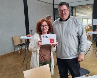 Eine kleine Anerkennung für die Arbeit wurde von Ortsbürgermeisterin Elke Thomas an den Vorsitzenden Andreas Gutting überreicht.