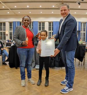 Nach der Abstimmung zu den ersten Tagesordnungspunkten händigte die Referentin für Fairtrade, Wynnie Kangwana Mbindyo, dem Bürgermeister die Auszeichnungsurkunde „Fairtrade-Town“ aus. Beide erläuterten den Hintergrund und den Zusammenhang dafür. Die Stadtverwaltung verfolgt das Ziel, globale Verantwortung wahrzunehmen und die Agenda 2030 mit ihren 17 Nachhaltigkeitszielen auf kommunaler Ebene umzusetzen.