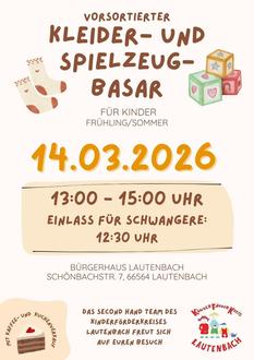 Am 14.03.2026 ist es wieder so weit: Der Kleider- und Spielzeugbasar öffnet seine Türen und lädt Familien aus der Region zum Stöbern und Kaufen ein. Seit vielen Jahren ist der zweimal jährlich stattfindende Basar ein fester Termin im Veranstaltungskalender der Region.