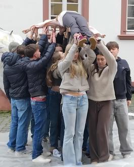 Das Kinder-/Jugend- und Familientheaterfestival SPIELSTARK blickt bereits auf eine lange Tradition zurück, so findet dieses in Ottweiler bereits zum 24. Mal statt und hat seit drei Jahren auch eine weitere Spielstätte in Saarlouis. Inzwischen ebenfalls traditionell eröffnen seit mehreren Jahren die Kurse im Fach Darstellendes Spiel des Gymnasiums Ottweiler und Schüler der Anton-Hansen-Schule Ottweiler mit Lehrer Dietmar Kempf das Festival mit Straßentheaterstücken. In diesem Jahr gab es zwei Inszenierungen zu sehen, in denen sich die DS-Kurse 10 und 11 des GO zeitkritisch mit aktuellen gesellschaftspolitischen Themen auseinandersetzten: Zu Beginn zeigte der DS10-Kurs unter der Leitung von Dagmar Wiltz mit seinem Stück „Wahrheit und Lüge“ auf, wie schwierig es in Zeiten sogenannter „alternativer Fakten“ sein kann, richtige und falsche Informationen voneinander zu trennen. Im Anschluss daran präsentierte der DS11-Kurs unter der Leitung von Lehrer Benedikt Hoster und der Theaterpädagogin Ela Otto seinen kritischen Blick auf die Gegenwart mit dem Stück „Zukunft träumen – Nazis in 2026“. Das Thema hatten die 19 Schülerinnen und Schüler des Kurses selbst gewählt und setzten sich in der Aufführung für die Vision einer Zukunft mit Zusammenhalt statt Spaltung und gegen den zunehmenden Rechtspopulismus ein.