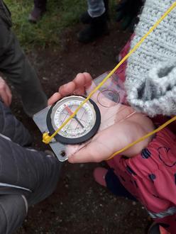 Nun erklärte er die Funktion und das Umgehen mit einem Kompass. In kleinen Gruppen durften die Kinder das anschließend ausprobieren. Wieder waren alle begeistert und fanden, dass es ein ereignisreicher, schöner Vormittag war, der allen viel Spaß gemacht hat.