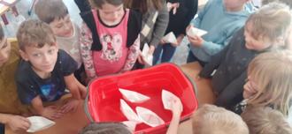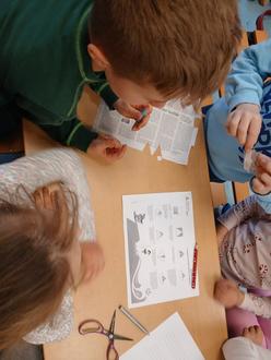 In der zweiten Klasse drehte sich alles um Papierboote. Mit viel Freude falteten die Kinder unterschiedliche Bootsmodelle und ließen sie anschließend im Wasser schwimmen. Besonders spannend war die Frage, wie viele 1-Cent-Münzen ein Boot tragen kann, bevor es untergeht. Die jungen Forscherinnen und Forscher stellten dabei fest, dass Boote aus Zeitungspapier oft stabiler waren als solche aus Kopierpapier. Außerdem experimentierten sie damit, wie sich die Boote bewegen lassen - durch Pusten, kleine Wellen oder vorsichtige Stöße im Wasser.