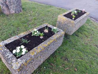 Ein unbekannte-/r Spender-/in hat diese Pflanztröge in Mainzweiler neu bepflanzt.