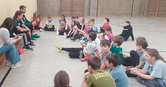Nach einer kurzen Aufwärmphase standen Geschicklichkeits- und Koordinationsspiele auf dem Programm. Anschließend traten die Schülerinnen und Schüler in kleinen Gruppen gegeneinander an und konnten ihr Können im Fußball unter Beweis stellen. Ein besonderes Highlight war das abschließende Spiel, bei dem die Lehrkräfte und die beiden Profifußballer gegen die Kinder antraten.