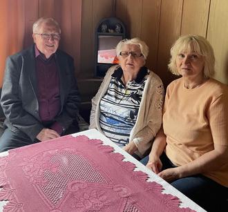Karl-Heinz Nätzer, der stellvertretende Ortsvorsteher von Ottweiler, hat Helga Lermann aus dem Anlass der Vollendung ihres 90. Lebensjahres besucht. Er überbrachte die Glückwünsche des Ortsvorstehers Michael Schmidt, des Bürgermeisters Holger Schäfer, des Landrats Sören Meng und der Ministerpräsidentin des Saarlandes, Anke Rehlinger. Das „Geburtstagskind“ freute sich darüber, im Kreis ihrer Lieben einen schönen Tag verbringen zu können und bedankte sich für die Glückwünsche und Aufmerksamkeiten. v. l. Karl-Heinz Nätzer, Helga Lermann und die Schwiegertochter Beate Lermann