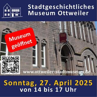 Das Stadtgeschichtliche Museum Ottweiler in der Linxweilerstraße 5 ist am Sonntag, 27. April von 14 bis 17:00 Uhr geöffnet. Die Ehrenamtlichen der Donnerstagsgruppe sind donnerstags morgens von 9 bis 11:30 Uhr in der Geschäftsstelle des Museum erreichbar.