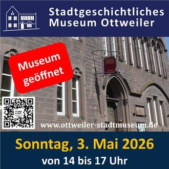 Am 03.05.2026 ist das Stadtmuseum in der Linxweilerstraße 5 von 14 bis 17:00 Uhr geöffnet. Und auch am Internationalen Museumstag am 17. Mai öffnet das Museum von 14 bis 17:00 Uhr seine Pforten. Donnerstagsmorgens von 9 bis 11:30 Uhr sind die ehrenamtlichen Mitarbeiter vor Ort erreichbar. Kontakt: Telefon 0 68 24 / 74 73