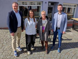 Bürgermeister Holger Schäfer und Marion Strempel vom Gewerbeverein wünschten der neuen Weinlounge alles Gute. Auch Ortsvorsteher Alexander Weiß und Ralf Hoffmann, zuständig für die Wirtschaftsförderung, waren mit dabei.