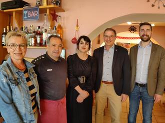 Auch Bürgermeister Holger Schäfer, Marion Strempel vom Gewerbeverein, Ortsvorsteher Alexander Weiß und Ralf Hoffmann von der Wirtschaftsförderung haben die Pizzeria „Roma“ besucht. Sie wünschten der jungen Gastronomin weiterhin viel Erfolg.
