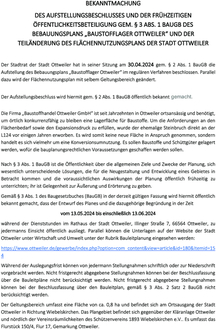 1. Bekanntmachung - Aufstellung und Scooping Baustofflager
