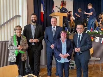Am Sonntag lud die Stadtverwaltung ins Schlosstheater, um dieses besondere Jubiläum zu feiern. Bürgermeister Holger Schäfer, seine Kollegin Florance Plissonnier, Doris Pack, ehemalige Europaabgeordnete, Roland Theis, MdL, und Dahmat Sisamci, MdL, betonten die Bedeutung der Verständigung zwischen den Ländern. Für musikalische Highlights sorgten die Singtoniker und das Musiklabor aus Niederlinxweiler. Ein weiterer Rückblick auf die Partnerschaft folgt bald.