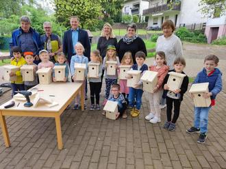 In der Natur für die Natur gewerkelt – Lautenbacher und Fürther Vorschulkinder bauten Nistkästen zusammen