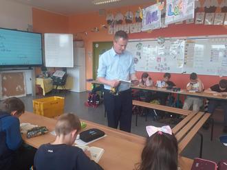 Zu UNESCO – Welttag des Buches bekamen die Schülerinnen und Schüler der Klasse 3.2 der Grundschule Neumünster Besuch von Post Ingo. Posti Ingo überraschte die Kinder mit einem Buchgeschenk aus der Aktion „Ich schenk dir eine Geschichte“. Jedes Kind bekam ein Exemplar des Romans „Mission Roboter – Ein spannender Fall für die Glücksagentur“. Und schon ging es los mit dem Lesen, jede Schülerin und jeder Schüler las mit Begeisterung einen Abschnitt des Buches vor. Viele lieben Dank an Post Ingo.