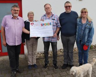 Achim Wagmann, Michaela Kany (Kinderhospizdienst), Josef Mrosek, Daniel Deckarm und Nicole Deckarm bei der Übergabe