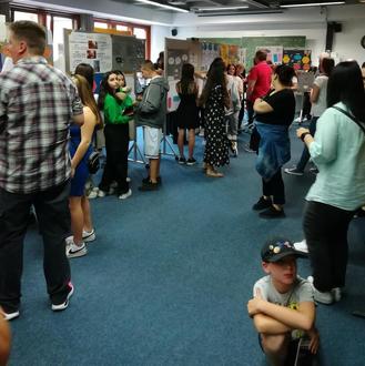Mithilfe eines Systems, bei welchem Klebepunkte an die Plakate geklebt werden konnten, die man persönlich am ansprechendsten und verständlichsten fand, konnten die 7. Klässler*innen und die Lehrer*innen dann gemeinsam die besten Präsentationen küren. Nach einer spannenden Auswertungsphase, die die Besucher*innen nutzen konnten, um Kontakte für Praktika und Infoveranstaltungen zu knüpfen und sich bei einer Bratwurst oder einem Stück selbst gemachtem Flammkuchen über die gesehenen Präsentationen zu unterhalten, ging es in den Endspurt. Als Höhepunkt des Abends wurden dann die drei besten Präsentationen von Maya, Nagma sowie Ignazio verkündet.