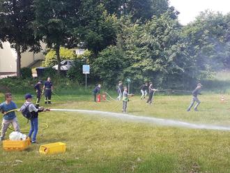 Die Highlights des Besuchs waren mit Sicherheit das selbständige „Löschen“ mit einem Schlauch und die Fahrt mit dem Feuerwehrauto.
