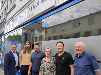 Alles Gute zur Eröffnung der Telis Finanz Kanzlei Ottweiler, das wünschten Bürgermeister Holger Schäfer, Ortsvorsteher Michael Schmidt, sein Stellvertreter Karl-Heinz Nätzer und Marion Strempel, 1. Vorsitzende des Gewerbevereins. Dem schloss sich auch Ralf Hoffmann an, zuständig für die Wirtschaftsförderung im Rathaus.