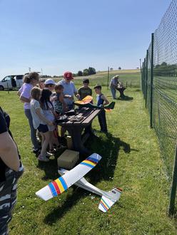 Höhepunkt für die Kinder war jedoch die Möglichkeit, selbst einmal ein Modellflugzeug zu steuern. Der Verein bietet mit einem leicht beherrschbaren Modell und zwei Sendern einen Lehrer-Schüler-Betrieb an. Dabei kann der Lehrer dem Flugschüler die Gewalt über das Flugzeug gewähren und mittels Loslassens eines Schalters sehr schnell wieder zurückholen. Diese Technik erlaubt es den jungen Flugzeugführern und -führerinnen vergleichsweise risikolos, ihre Fähigkeiten auf diesem Gebiet zu testen. Dabei stellte sich schnell heraus, dass dies nicht so einfach ist, wie es aussieht und keinesfalls eine Domäne der Jungen ist.
