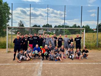 Schüler*innen der Musik-AG unter der Leitung von Anjuli Schön sorgten mit zwei Liedern für einen stimmungsvollen Auftakt der Begrüßung durch Schulleiter Sascha Mechenbier, der sich über die zahlreichen Besucher*innen freute und sich bei den vielen externen Unterstützer*innen bedankte. Die Schüler*innen der Trommel AG unter der Leitung von Caroline Neufang und Isabelle Carrouée heizten dem Publikum vor dem Fußball-Spiel ein und sorgten für eine ausgelassene Stimmung, so dass die Schulmannschaft der Eric Carle-Schule die Mannschaft der CBF-Charity mit 10:8 besiegte.